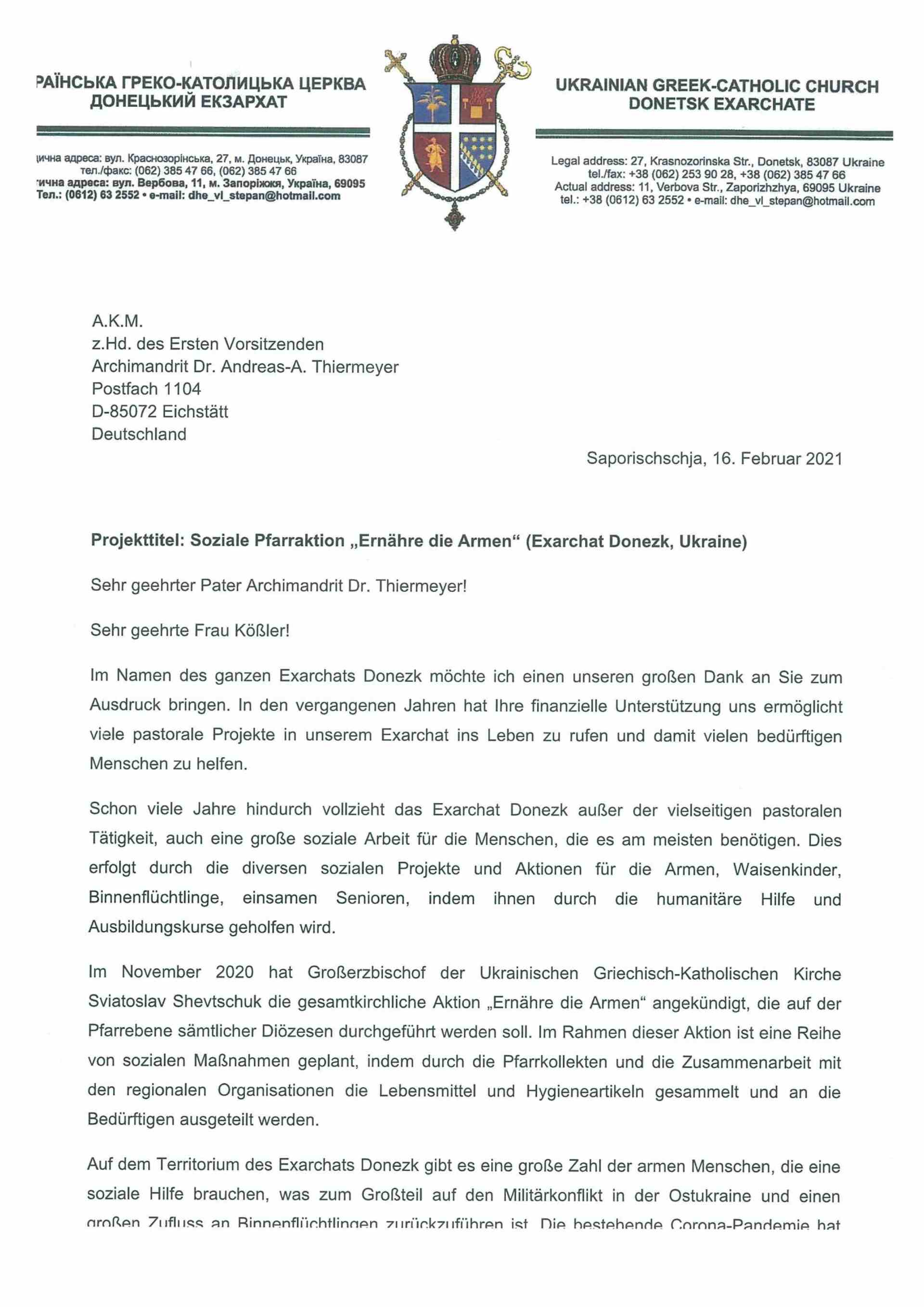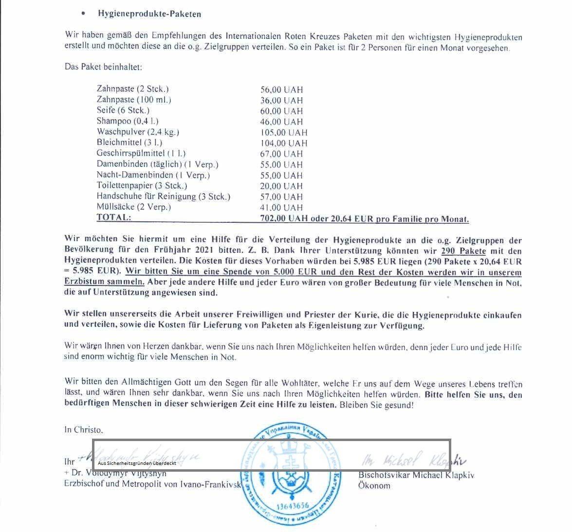 In unserem Erzbistum möchten wir humanitäre Aktivitäten in diesem Jahr fortsetzen und den bedürftigen Menschen mit folgenden Maßnahmen helfen: